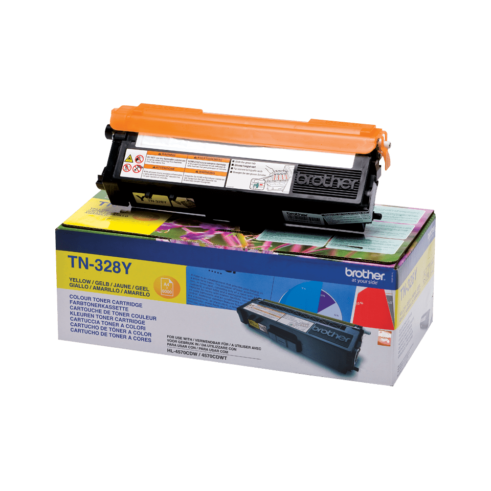 Brother TN-328Y. Farve toner sideydelse: 6000 Sider, Udskrivning af farver: Gul, Antal pr. pakke: 1 stk