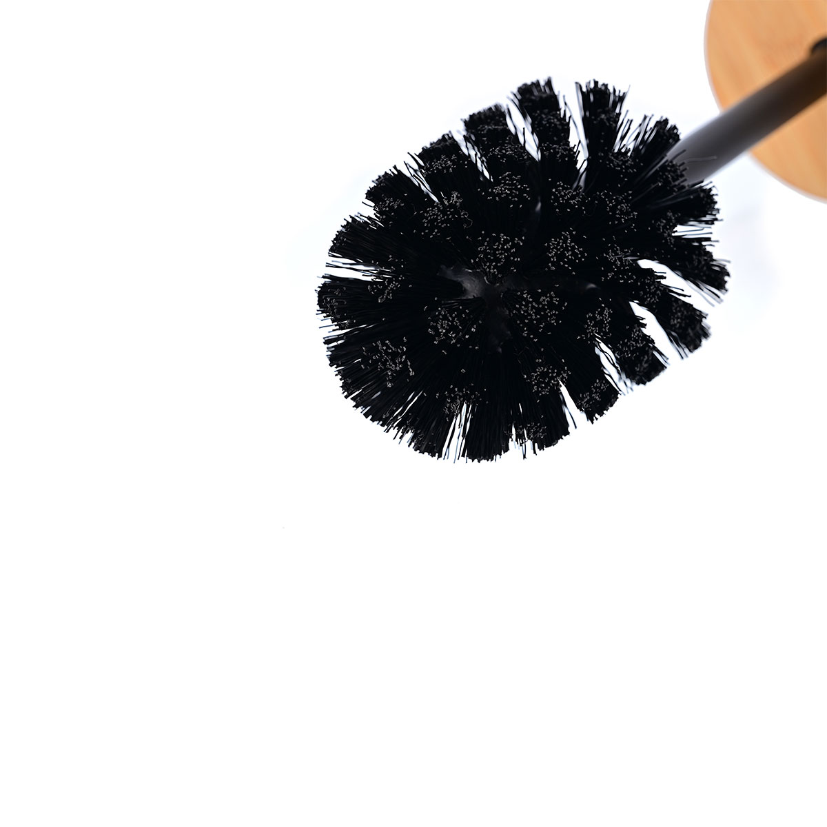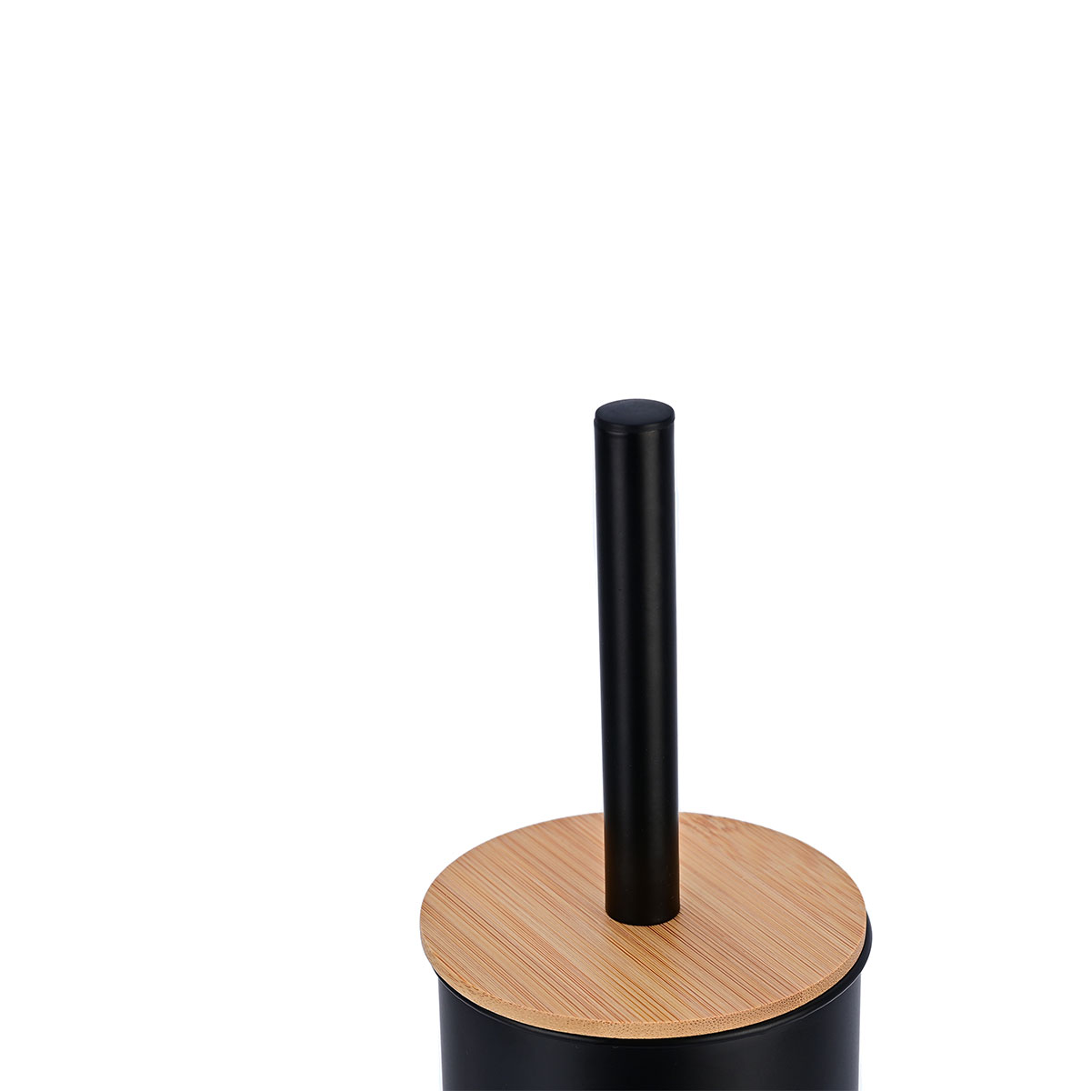 Toiletbørste Bambus Sort Denne sorte toiletbørste fra Estias bambus-serie er skabt i et moderne, minimalistisk design. Toiletbørsten har en elegant mat sort overflade og et låg i bambus, som passer perfekt ind i det stilrene badeværelse. Det lette materiale gør den nem at håndtere, mens det lange greb sikrer en komfortabel anvendelse. Børstehovedet er skjult diskret i beholderen, og den stabile fod sørger for, at toiletbørsten står solidt og ikke vælter. Toiletbørsten er en del af bambus-serien – en komplet kollektion af badeværelsestilbehør i samme sorte farve. Den kan købes separat eller som del af et samlet badeværelsessæt med matchende pedalspand og øvrige accessories. Mål: 38 x 9,5 cm