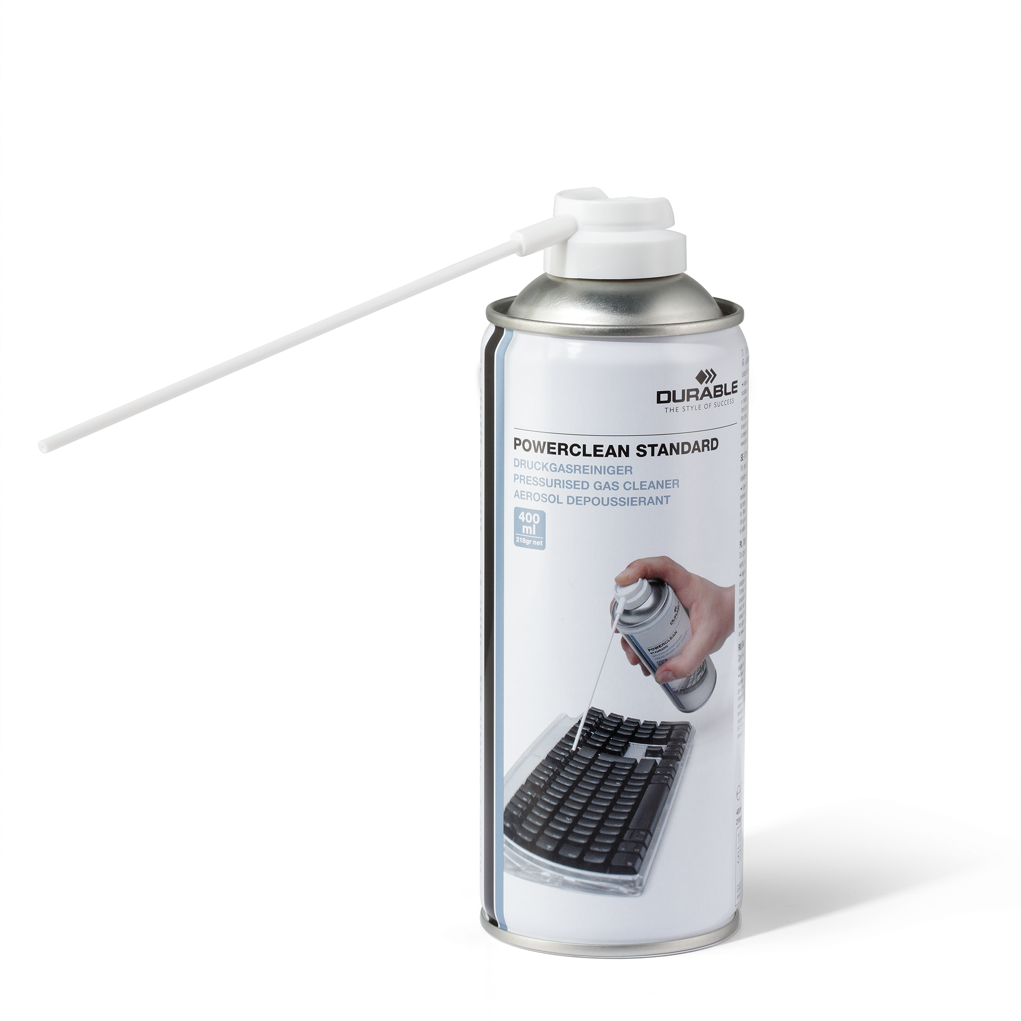 Trykluftrenser powerclean 400 ml.Komprimeret luftspray POWERCLEAN for rengøring af utilgængelige eller sarte overflader. Med praktisk sprayrør. Let antændeligt gas. Indhold 400 ml.