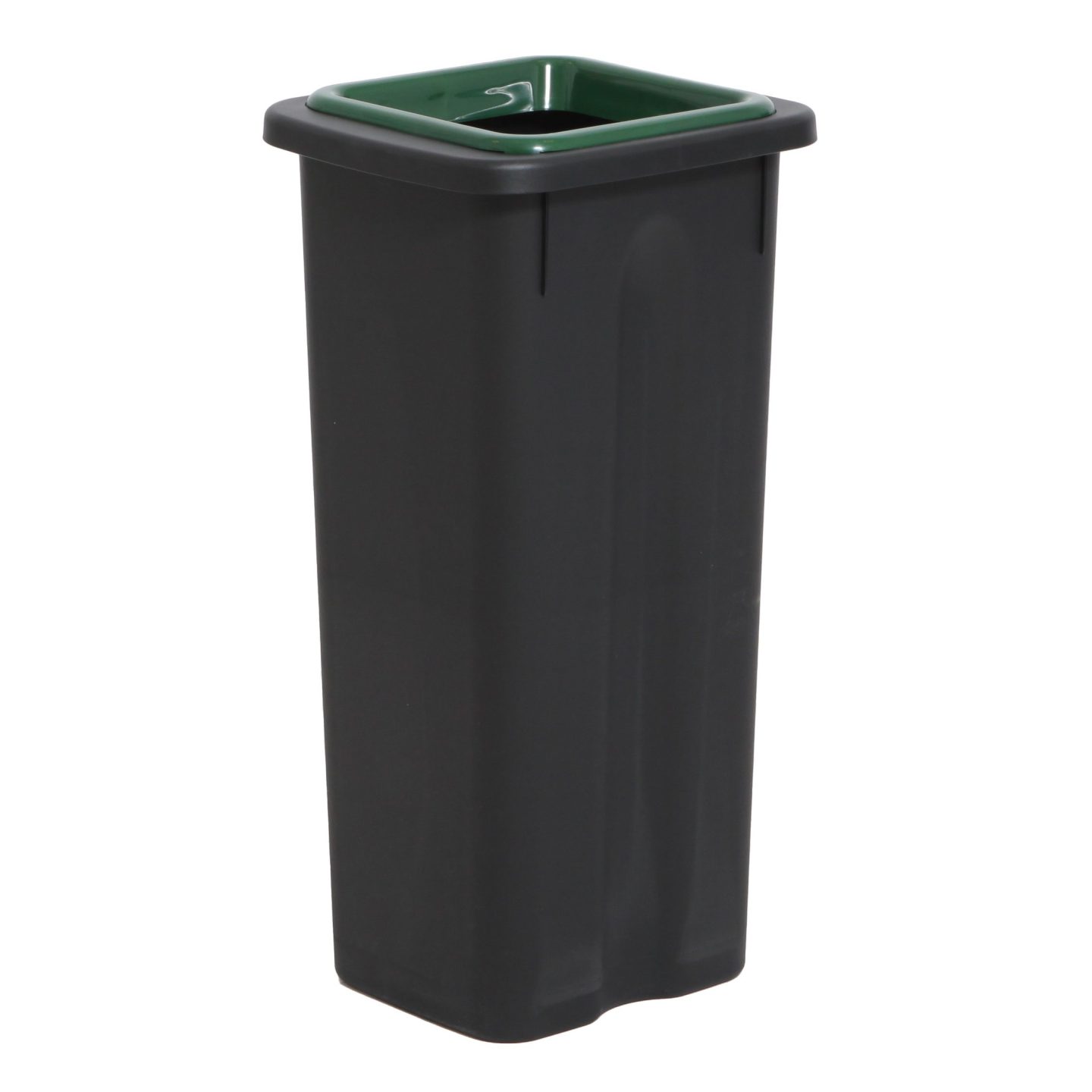 Denne lille TWIN affaldsspand til affaldssortering er udført i sort, kraftig, 100% genanvendt plastik med en kapacitet på 53l og grønt låg. TWIN affaldsspande er et billigt, økonomisk og miljøvenligt alternativ til dyre sorteringssystemer, der er tilgængelige på markedet. Disse små TWIN affaldsspande passer perfekt til sortering i f.eks. hjemmet eller på kontoret. Kapacitet på 53l. Sort skraldespand med grønt låg. 100% genanvendt plastik. Kan sættes i en Style base / fod sammen med ekstra spande i f.eks. andre farver for at skabe et sorteringssystem. Base og ekstra spande købes separat.