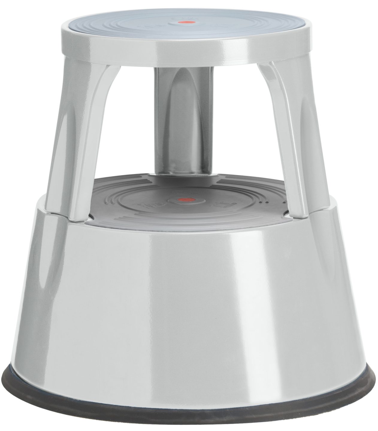 Pulverlakeret metal og leveres med 3 hjul, som tillader komplet mobilitet. Du står sikkert på den skridsikre trædeflade