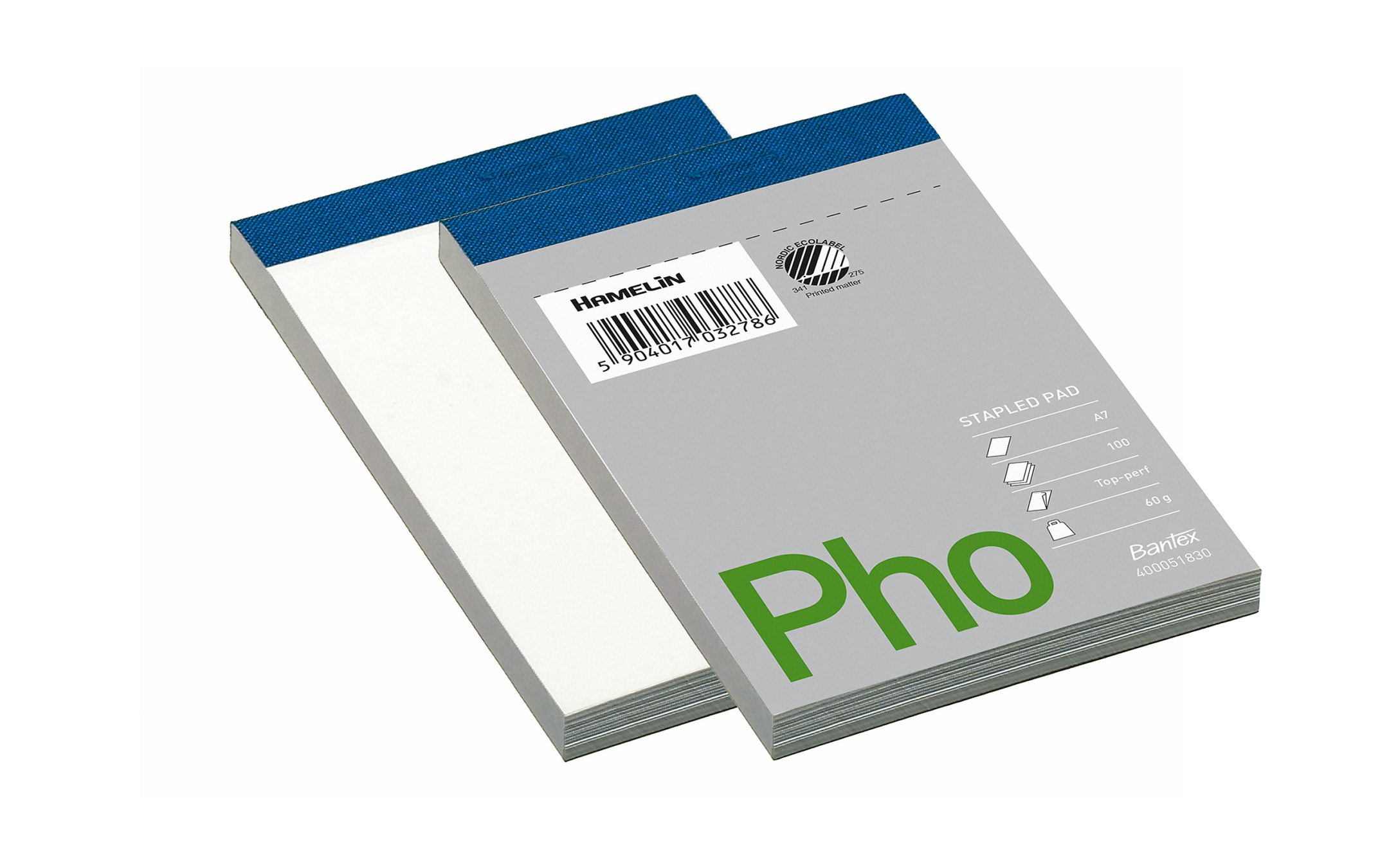 Hvid 60g papir, ulinjeret. Certificeret med den nordiske svan og EU-ecolabel, der garanterer den reducerede miljøpåvirkning af papirprodukter i hele deres livscyklus, fra råmaterialer til levetid. 100. Uhullet. Mikroperforering.