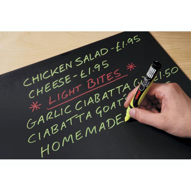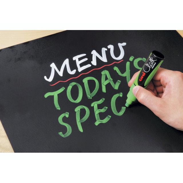 Uni Chalk Marker 8 stk. pr. sæt i farverne rød, gul, blå, pink, grøn, orange, lille og hvid. Egenskaber • Kan bruges på glatte overflader • På glastavler og vinduer • Vandfast – skriv/tegn på glastavler som skal stå ude – lad det tørre så kan det tåle regn. • Fjernes med en våd klud • Skrivehoved i 8mm