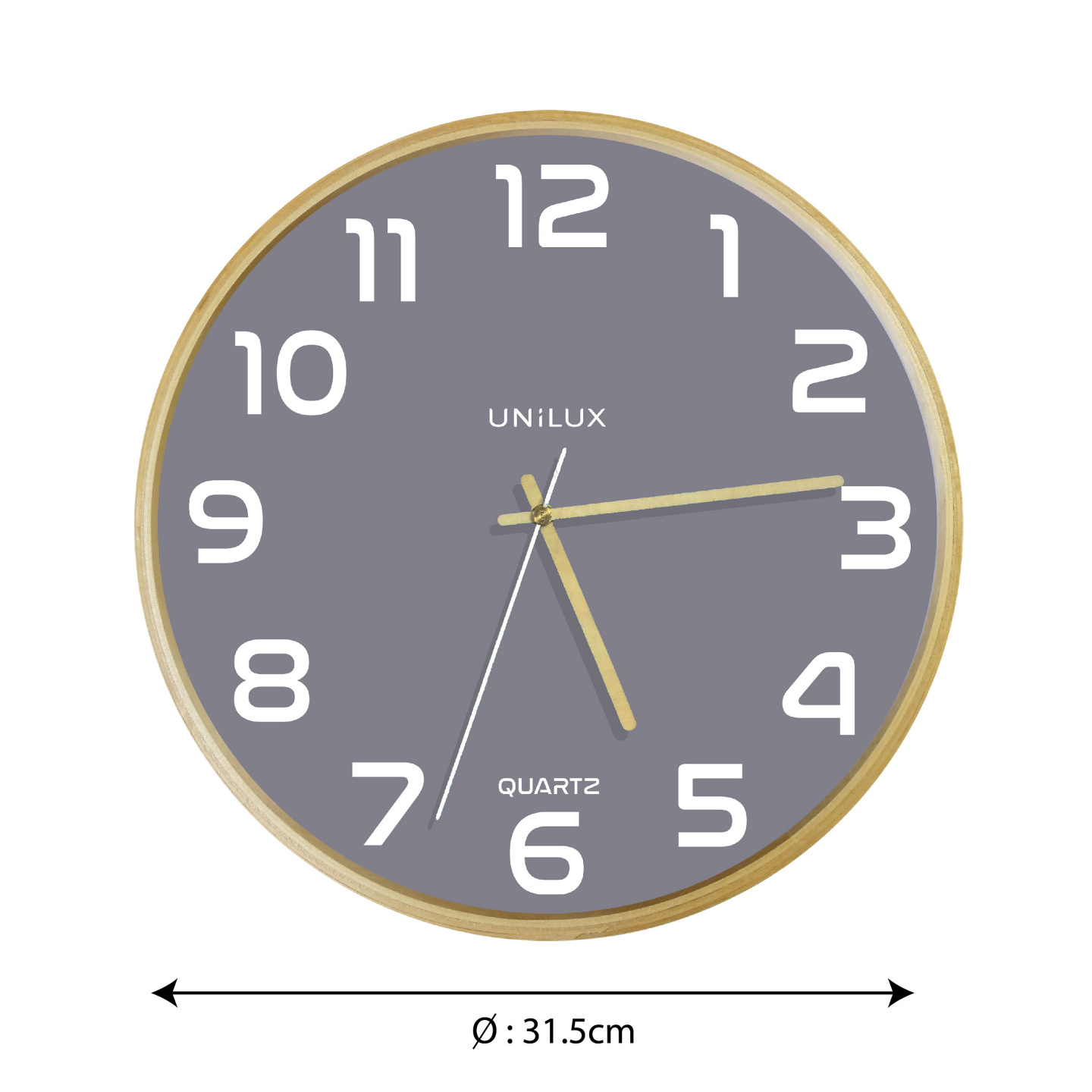 Præcision: Kvartssystem af høj kvalitet giver pålidelighed med et sekunds forskel efter seks års drift. Hurtig vægmontering med ét hul. Supplerende produkter: ur perfekt sammensat med VICKY LED-lampen, PRYSKA-gulvlampen, ACCESS-knagerækken og det elektriske skrivebord ERGO WELL. Gennemsnitligt forbrug: 0,21 mA. 1 AA-batteri (1,5 V) medfølger. Diameter: 31,5 cm. Tykkelse: 3,5 cm. Vægt: 0,77 kg. To års garanti. Materialer: ramme af bøgetræ/fladt låg i mineralglas.