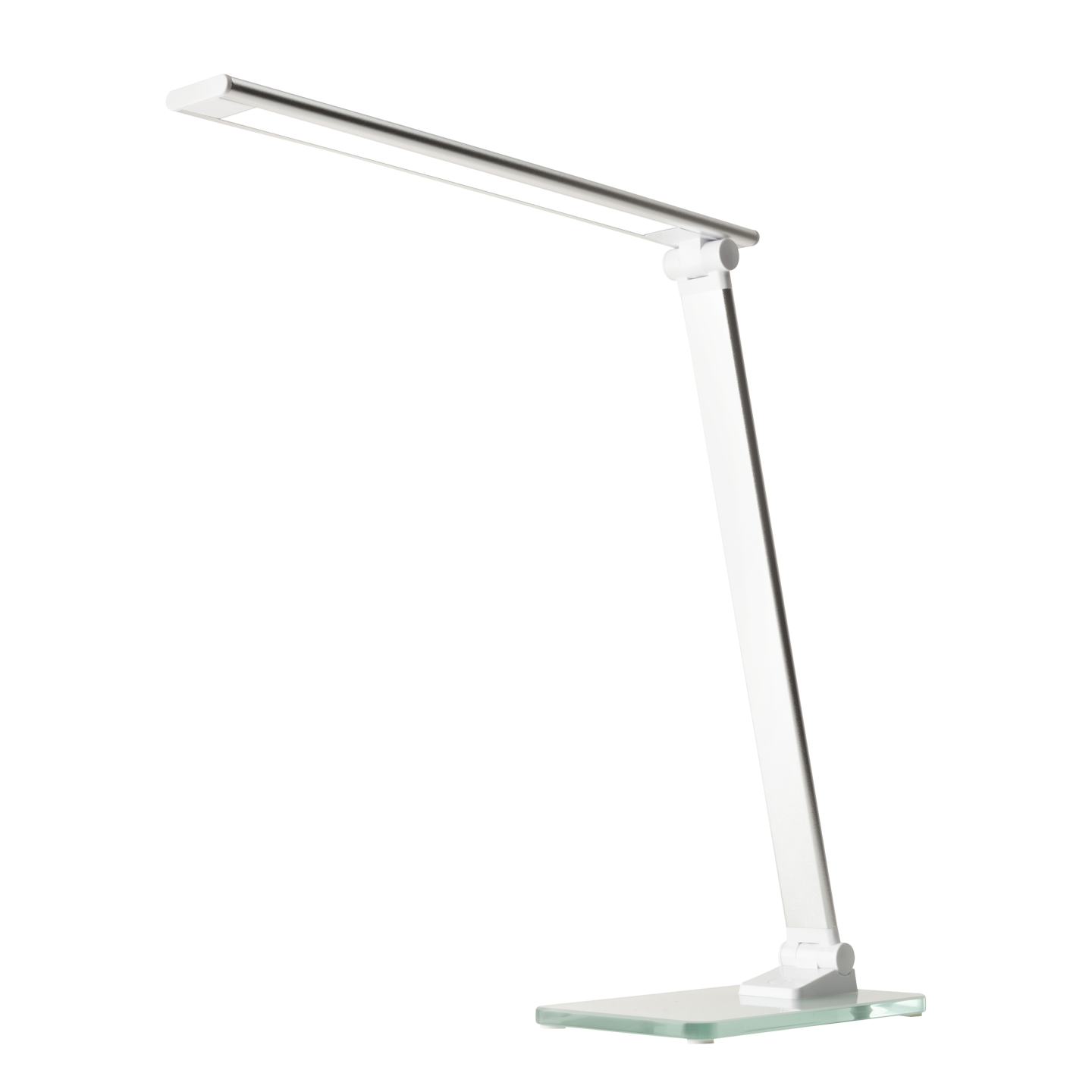 Natlys-tilstand: et blødt lys i bunden af lampen, der kan bruges som natlys. Stabil og solid: Lampens vægtede glasbund og 1 cm tykke vægtmodstand sikrer en perfekt stabilitet af lampen, uanset hvor du placerer den. Materialer: glasbund / arme og hoved af aluminium. CRI 81 og garanti 2 år. Nominel effekt: 6W. Energiforbrug: 5KWh/1000h. 1100 Lux ved 35 cm. Lyseffektivitet: 120 lm/W. Farvetemperatur: 3000K/4000K/6000K. Levetid: 50. 000 timer.