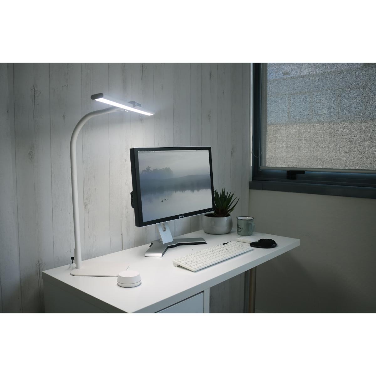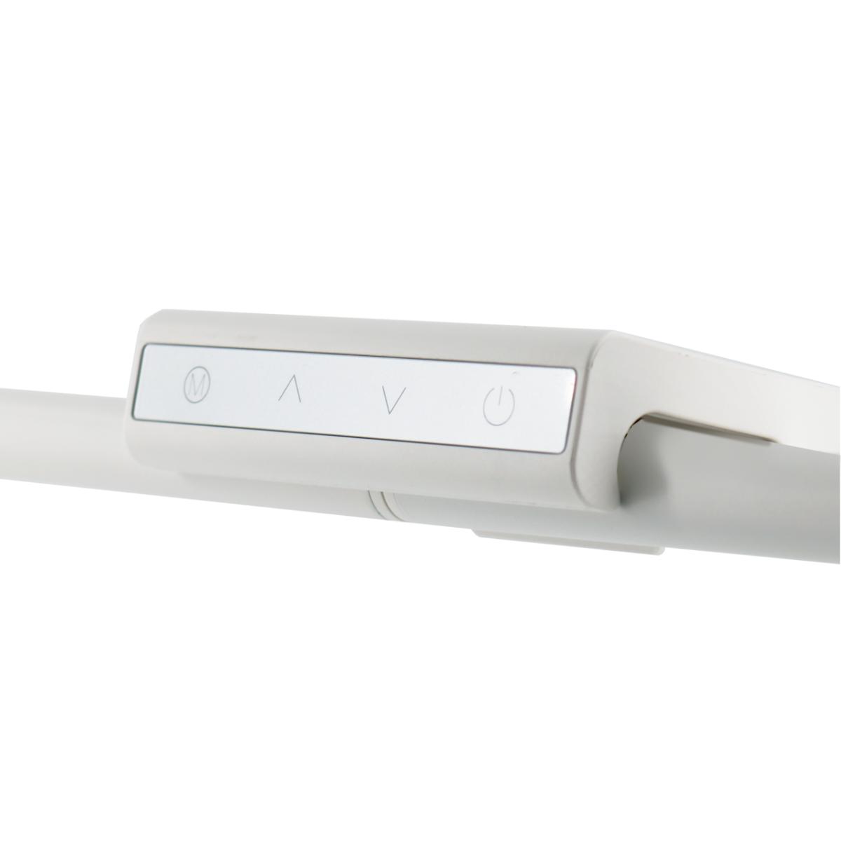 Moderne designlampe: det innovative, slanke, luftige og raffinerede design vil højne dit kontorinteriør. Variation af lysstyrke og farvetemperatur: På hovedet kan man variere lysstyrken på to berøringsfølsomme kontakter samt justere farvetemperaturen. Tilpas din belysning efter din aktivitet (hvile, læsning, arbejde). Intelligent: Lampen tilpasser sit lys efter arbejdsområdets omgivende lys takket være lysstyrkesensoren, så der opnås bedre visuel komfort. CRI 82 og 2 års garanti. Nominel effekt: 12,7 W. Energiforbrug: 10,6 kWh/1000 timer. 1170 Lux ved 50 cm. Lyseffektivitet: 100 lm/W. Farvetemperatur: 3000K til 6000K. Levetid: 50. 000 timer.