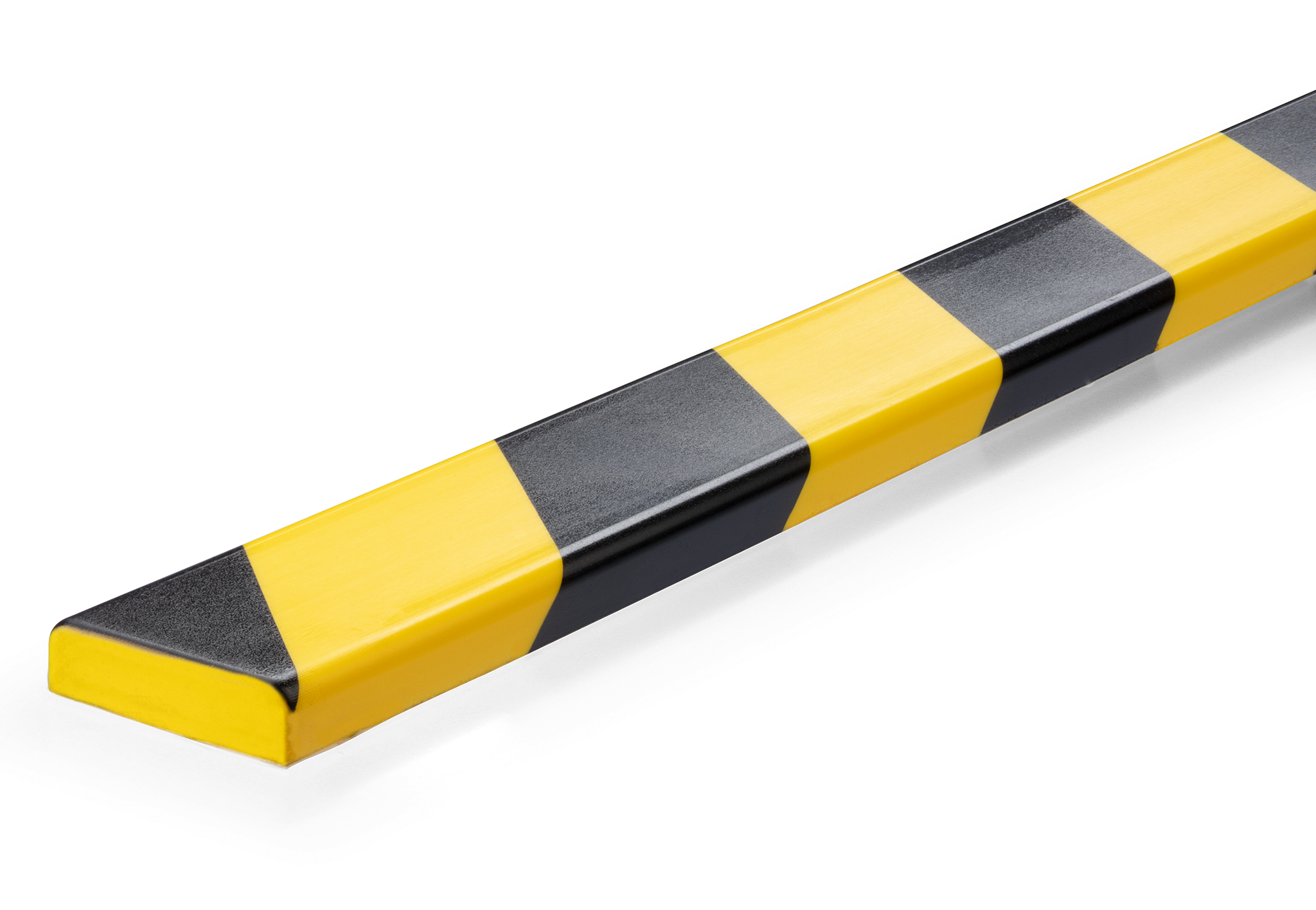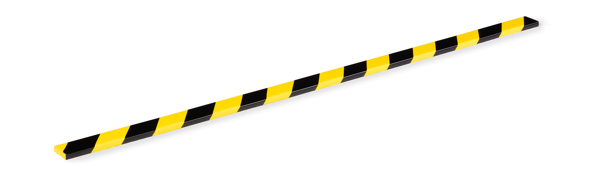 Advarsels- og beskyttelsesprofiler som denne vægbeskyttelse anvendes i industrier og andre indendørs miljøer for at beskytte personer, køretøjer og møbler i tilfælde af mindre kollisioner. De sort/gule striber advarer mod fremspringende overflader, og polyuretanskummet, som beskyttelsesprofilen er fremstillet af, er stødabsorberende. Den selvklæbende vægbeskyttelse skæres til i den ønskede længde med en skarp kniv. Stærk, selvklæbende overflade af god kvalitet, der klæber på metal, træ, pap og fliser med bedste resultat ved en temperatur på 10-30 °C. Farvenuancer i henhold til ASR A1.3 svarende til RAL 1004/9003 (signalgul/signal-sort). Testet i henhold til brandklassificering DIN EN 13501-1 klasse E. Temperaturbestandig fra -30°C – + 70°C. Længde 1 m. Profilen er 40 mm bred og 10 mm tyk.