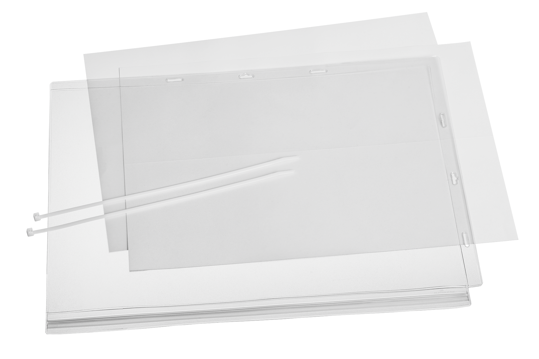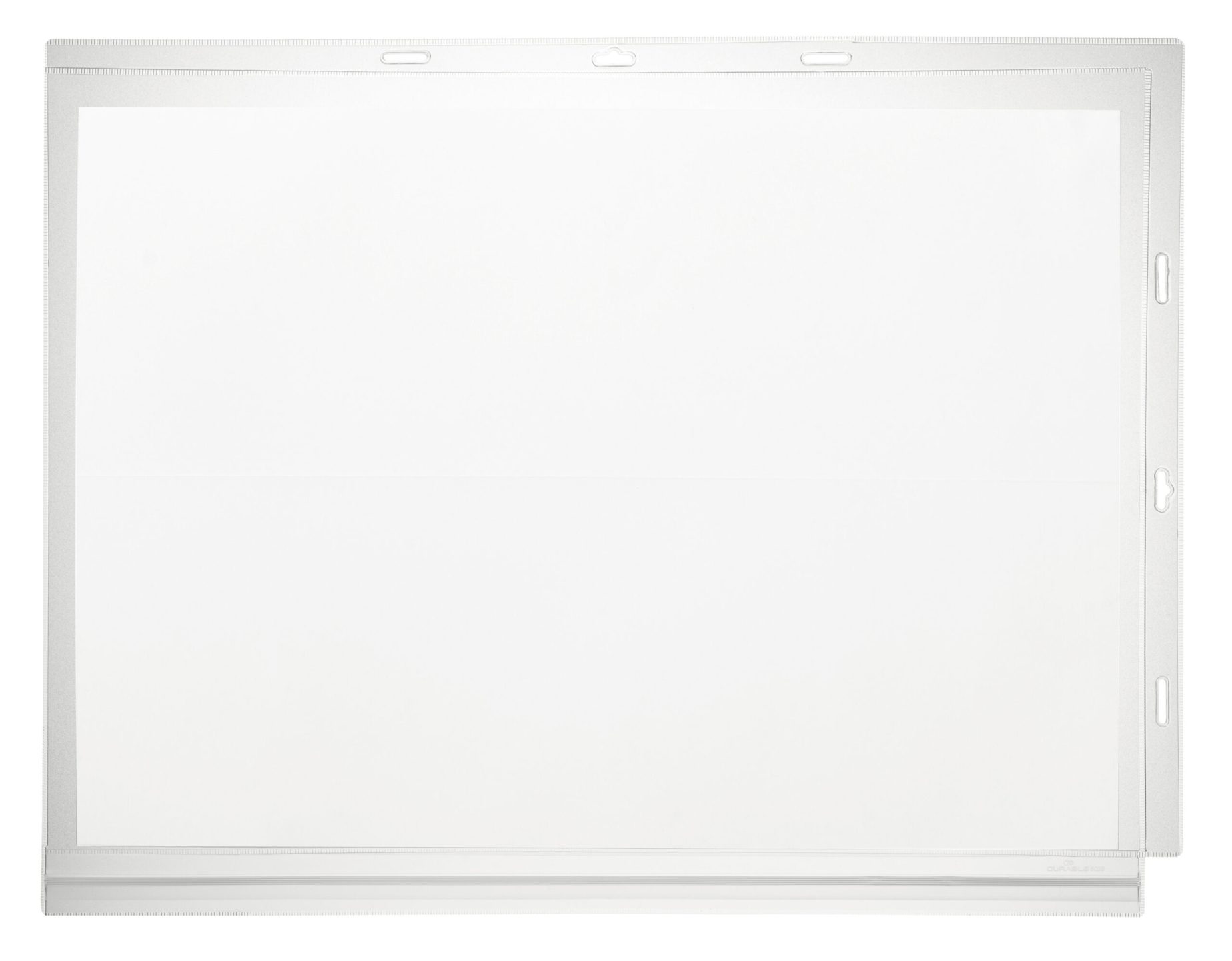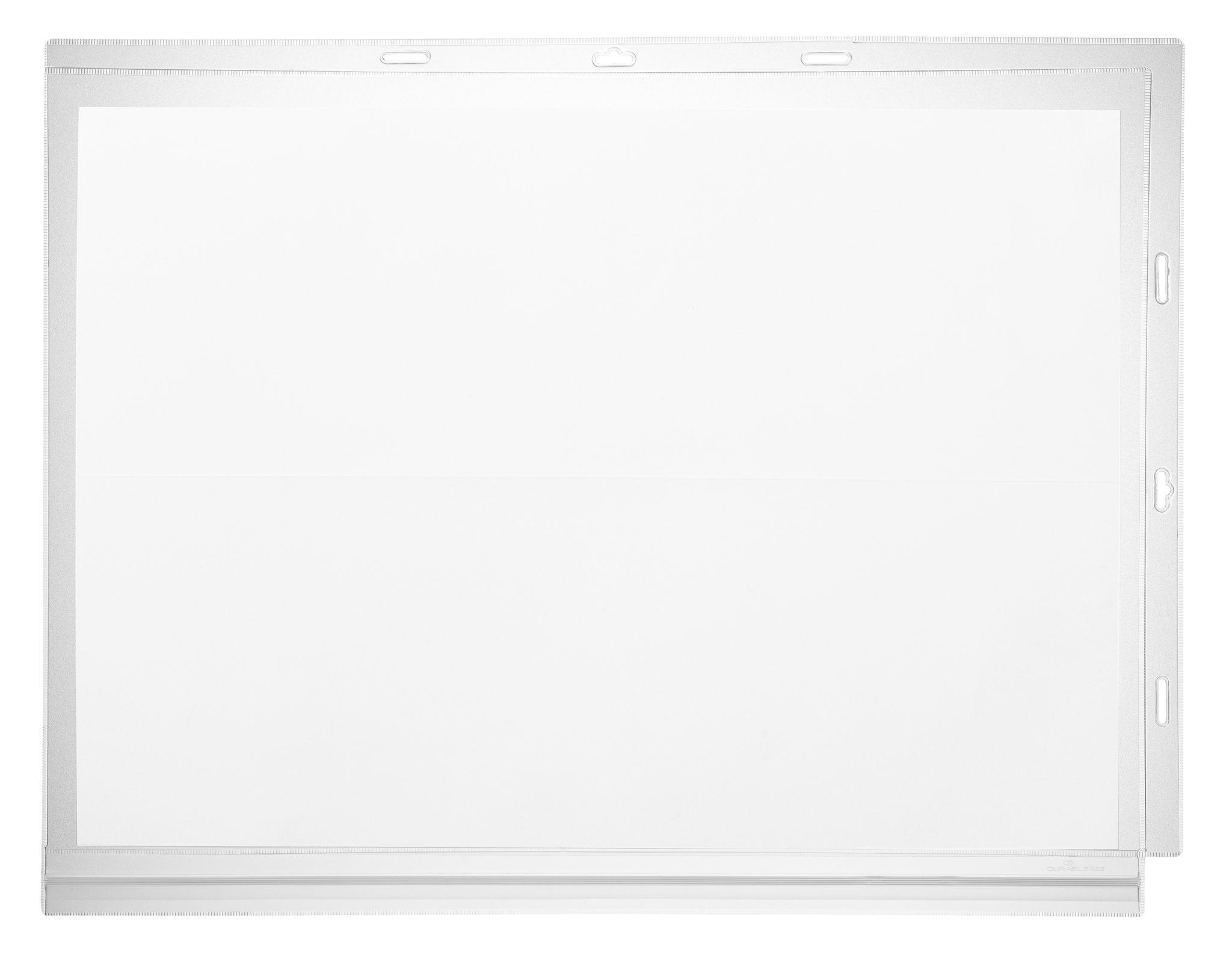 Vandtæt*, robust infolomme med trykforsegling, der beskytter indersiden mod regn, fugt, vandsprøjt og snavs i f.eks. svømmehaller, saunaer, byggemarkeder og havecentre. UV-bestandig, temperaturbestandig fra -20 °C til +60 °C, ridsefast, ikke-reflekterende, vaskbar og desinficerbar er egenskaber, der sikrer, at den bevarer sin form og funktion over tid. Denne høje kvalitet er med til at reducere engangsbrug og affald i overensstemmelse med DURABLE’s Rethink-bæredygtighedskoncept, som fokuserer på at kombinere funktionalitet og kvalitet med miljøansvar. Til dobbeltsidet information i stående eller liggende format medfølger 2 hvide 160g/m2 A3-ark. Skiltet/informationen kan laves ved hjælp af skabeloner, der er tilgængelige i den gratis Duraprint-software. Der medfølger to kabelbindere, som trækkes gennem hullerne i infolommen og fastgøres til f.eks. et gitter. Når infolommen ikke er i brug, anbefales det at opbevare den ved ca. 20 °C og en luftfugtighed på ca. 50 % for at bevare dens kvalitet og lange levetid. 5 lommer i én pose. *Testet efter IPX5-standarden, hvilket betyder, at den kan modstå vandstænk, regn og lavtryksvandstråler fra flere retninger.