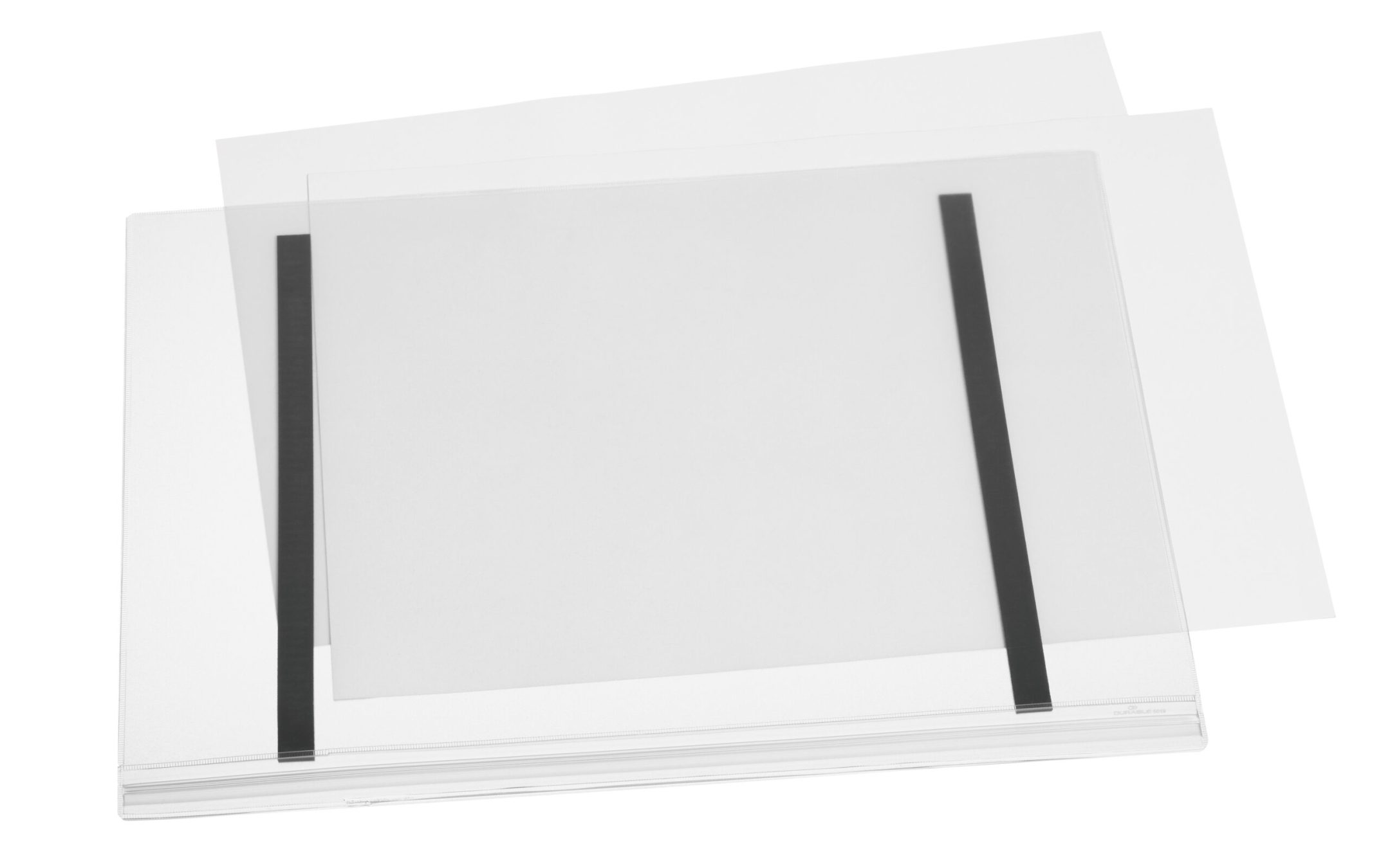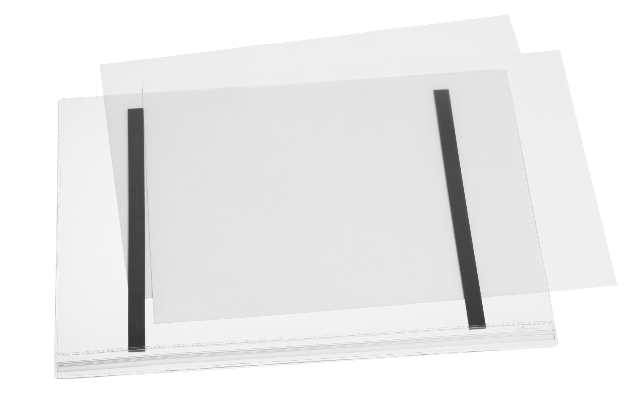 Vandtæt*, robust infolomme med trykforsegling, der beskytter indersiden mod regn, fugt, vandsprøjt og snavs i f.eks. svømmehaller, saunaer, byggemarkeder og havecentre. UV-bestandig, temperaturbestandig fra -20 °C til +60 °C, ridsefast, ikke-reflekterende, vaskbar og desinficerbar er egenskaber, der sikrer, at den bevarer sin form og funktion over tid. Denne høje kvalitet er med til at reducere engangsbrug og affald i overensstemmelse med DURABLE’s Rethink-bæredygtighedskoncept, som fokuserer på at kombinere funktionalitet og kvalitet med miljøansvar. Til dobbeltsidet information i stående eller liggende format medfølger 2 hvide 160g/m2 A3-ark. Skiltet/informationen kan laves ved hjælp af skabeloner, der er tilgængelige i den gratis Duraprint-software. To magnetiske striber på bagsiden af infolommen gør, at de kan sidde fast på glatte, magnetiske overflader. Når infolommen ikke er i brug, anbefales det at opbevare den ved ca. 20 °C og en luftfugtighed på ca. 50 % for at bevare dens kvalitet og lange levetid. 5 lommer i én pose. *Testet efter IPX5-standarden, hvilket betyder, at den kan modstå vandstænk, regn og lavtryksvandstråler fra flere retninger.