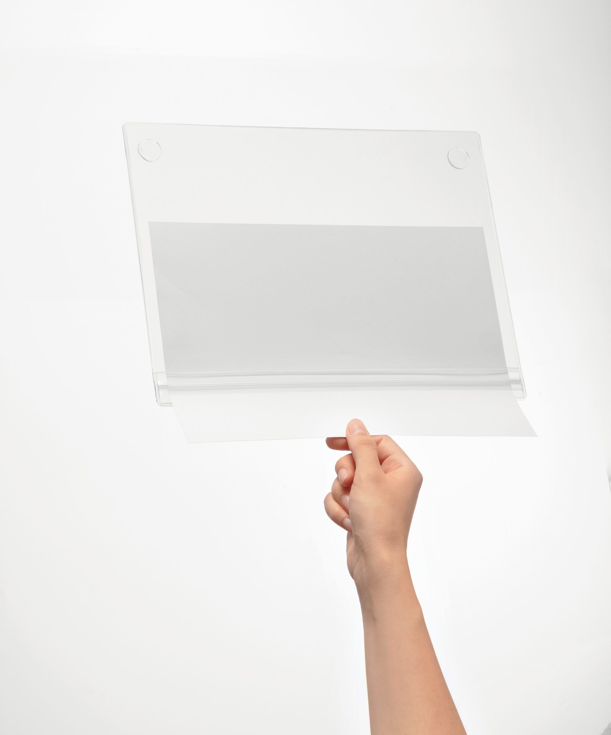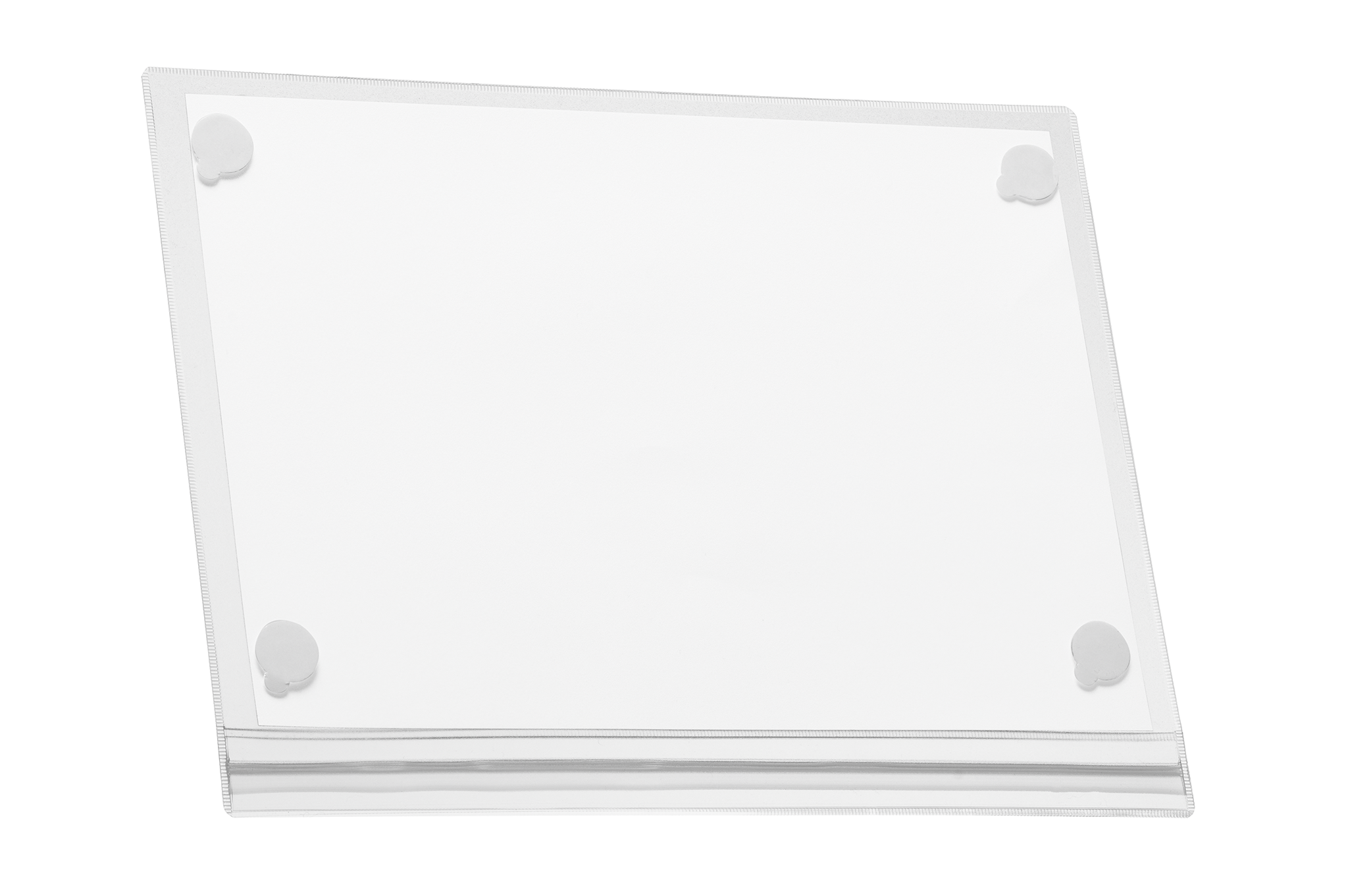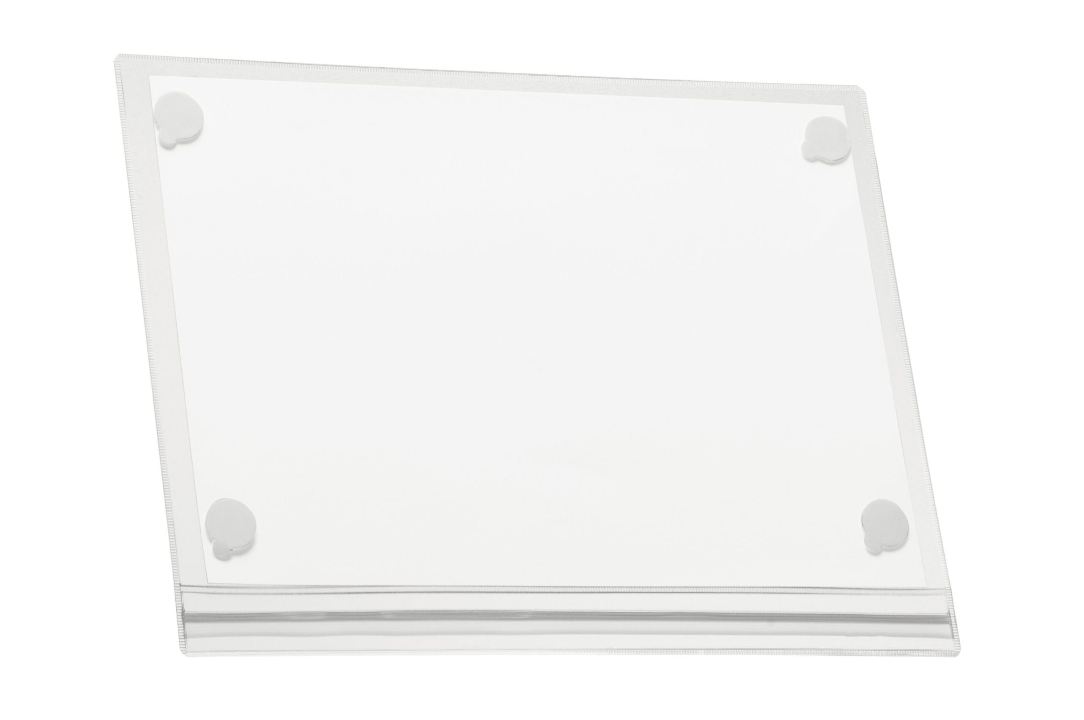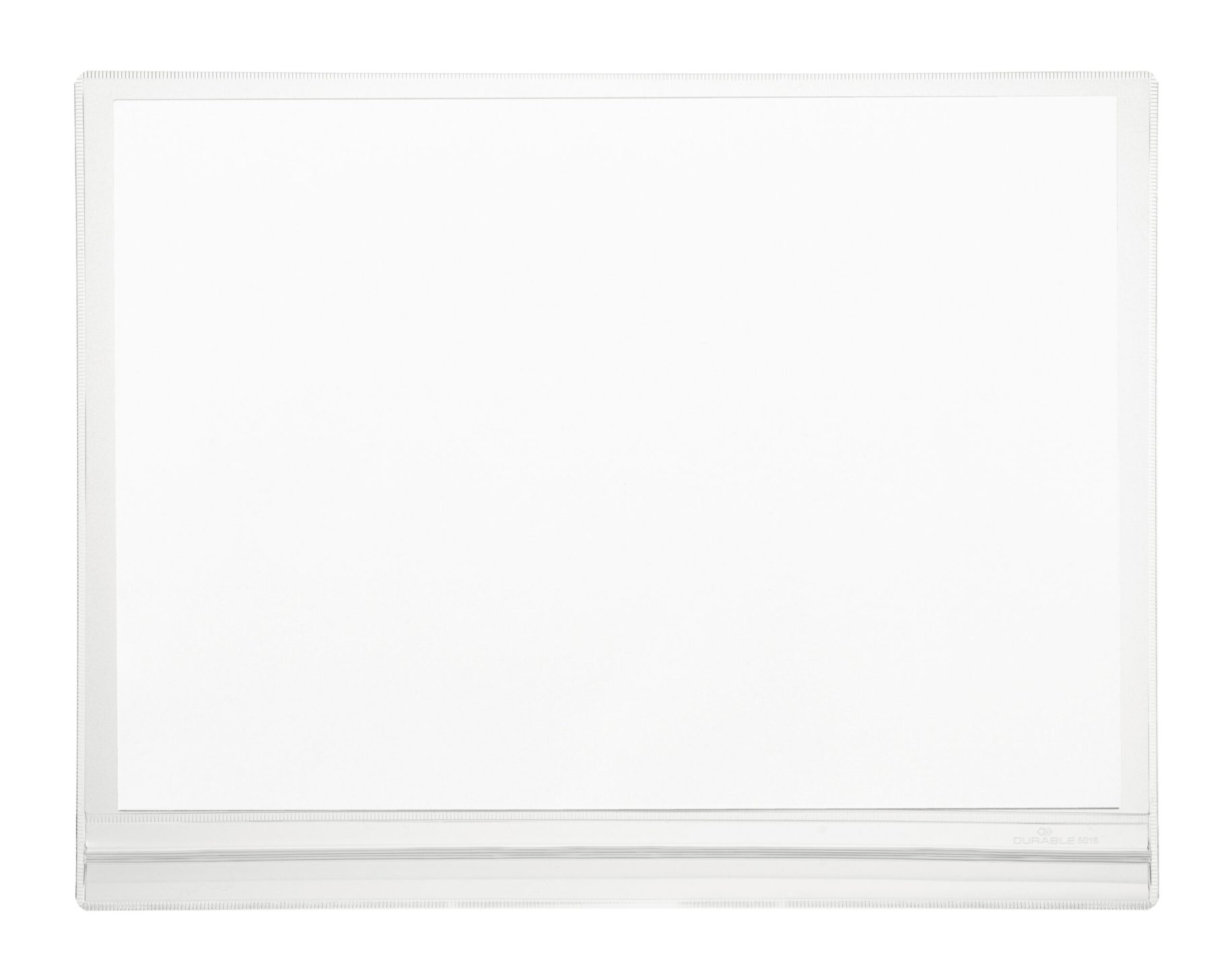 Vandtæt*, robust infolomme med trykforsegling, der beskytter indersiden mod regn, fugt, vandsprøjt og snavs i f.eks. svømmehaller, saunaer, byggemarkeder og havecentre. UV-bestandig, temperaturbestandig fra -20 °C til +60 °C, ridsefast, ikke-reflekterende, vaskbar og desinficerbar er egenskaber, der sikrer, at den bevarer sin form og funktion over tid. Denne høje kvalitet er med til at reducere engangsbrug og affald i overensstemmelse med DURABLE’s Rethink-bæredygtighedskoncept, som fokuserer på at kombinere funktionalitet og kvalitet med miljøansvar. Til dobbeltsidet information i stående eller liggende format medfølger 2 hvide 160g/m2 A4-ark. Skiltet/informationen kan laves ved hjælp af skabeloner, der er tilgængelige i den gratis Duraprint-software. Klæber på rene, glatte, faste og tørre overflader med 4 medfølgende selvklæbende puder, som kan fjernes uden at efterlade klæberester. Når infolommen ikke er i brug, anbefales det at opbevare den ved ca. 20 °C og en luftfugtighed på ca. 50 % for at bevare dens kvalitet og lange levetid. 5 lommer i én pose. *Testet efter IPX5-standarden, hvilket betyder, at den kan modstå vandstænk, regn og lavtryksvandstråler fra flere retninger.