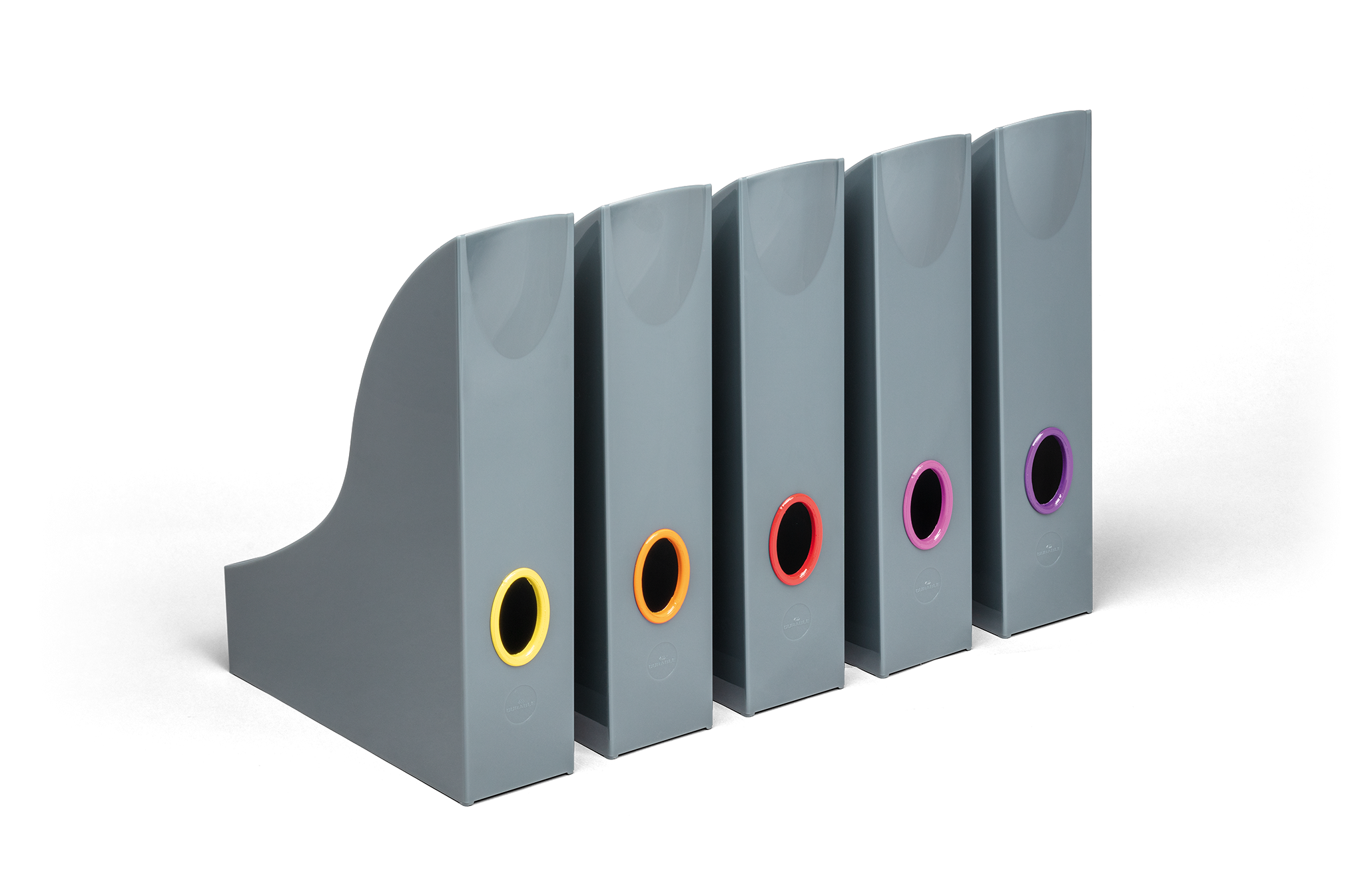 Organisering af dokumenter gøres nemmere: Skrivebordstilbehør i det moderne VARICOLOR® design. Spinkle farvede konturer giver en nem orientering. • 5 tidsskriftholdere et sæt • Grip huller i forskellige farver for nem orientering og optimal håndtering • Til magasiner, kataloger og brochurer mv. Op til A4-format • Dimensioner: 73 x 306 x 241 mm (B x H x D)
