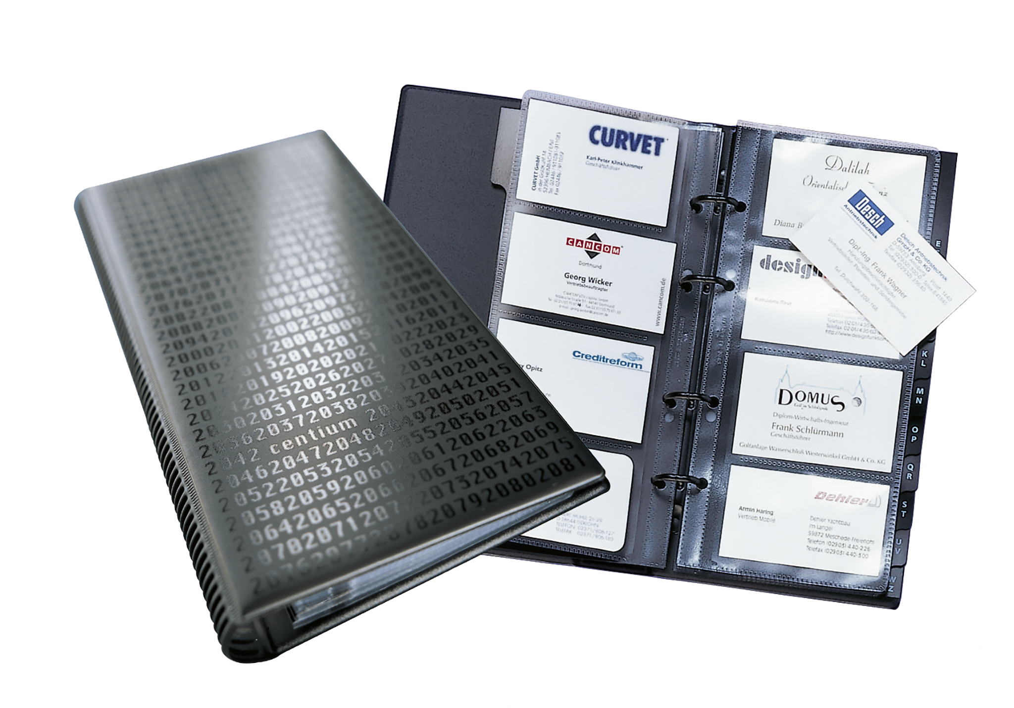 Visifix® centiumVisitkortmappe med ringmekanisme med plads til 400 visitkort.