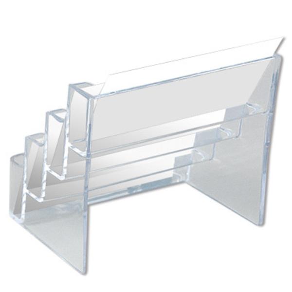 Visitkortholder i gennemsigtig akryl. Med 4 fag til visitkort.