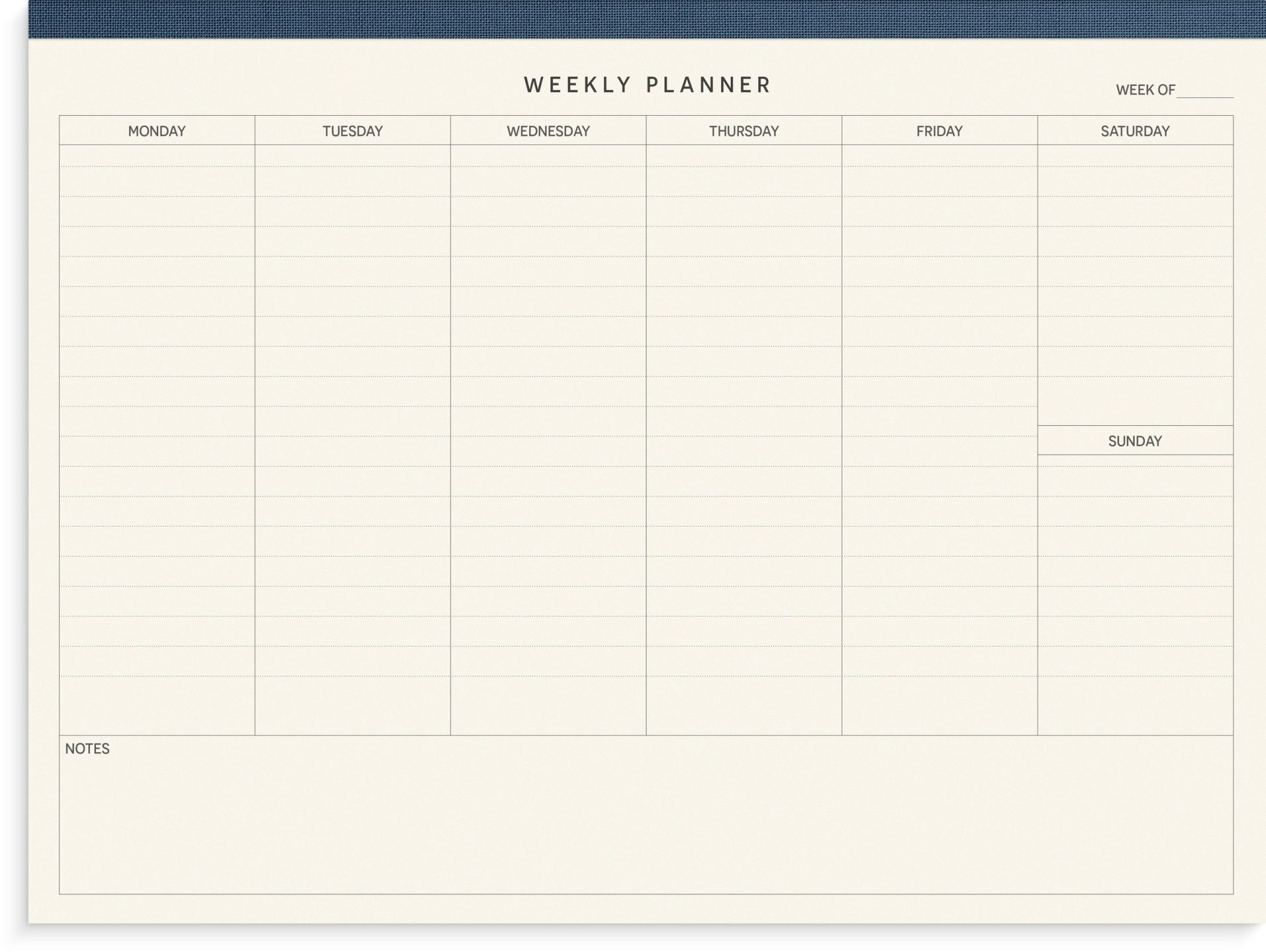 Ugeplanlægger, der er lige så praktisk og enkel, som den er en smart. Fungerer lige godt hjemme som på kontoret. Planlæg indkøb, shopping, møder og aktiviteter. Udateret og kan bruges når som helst.