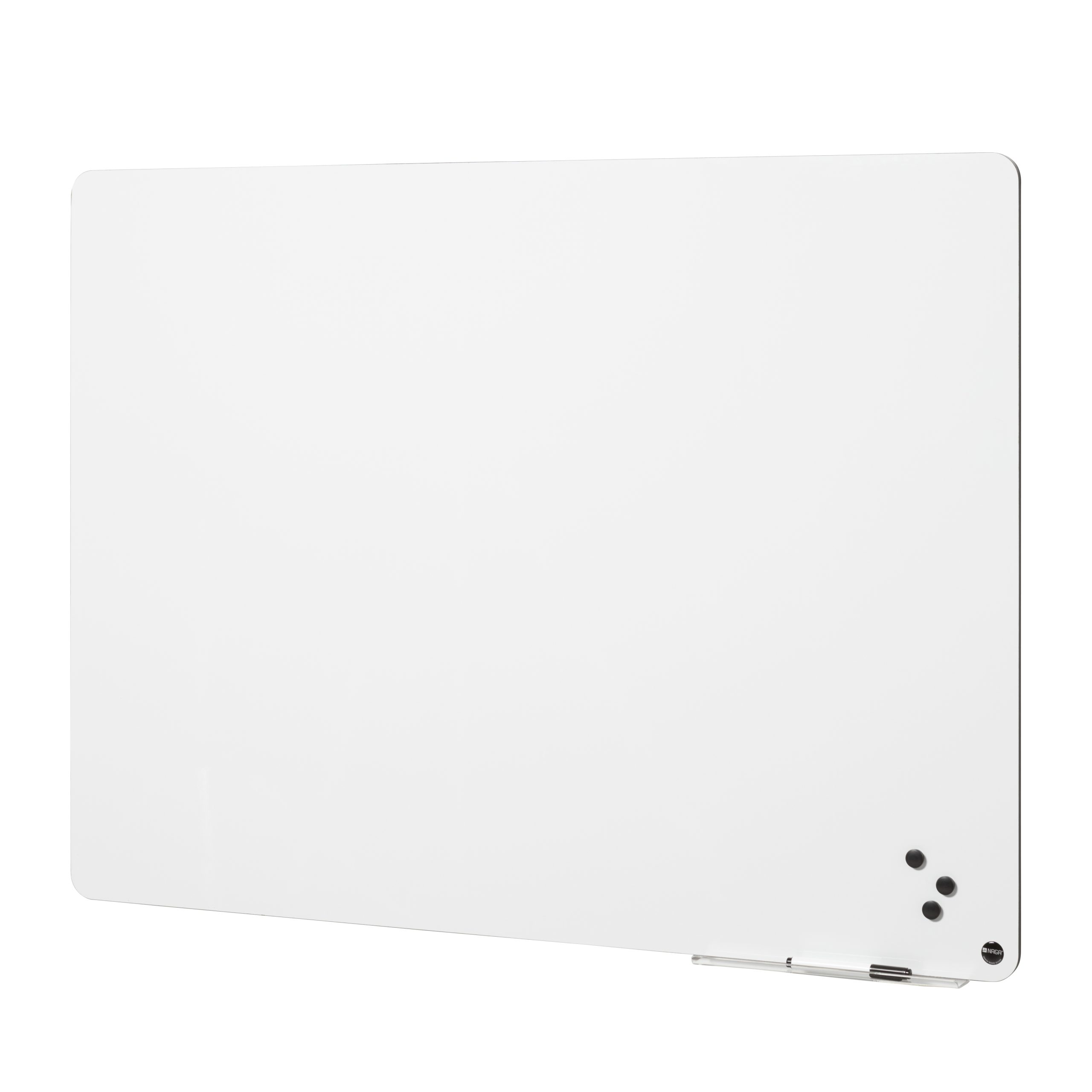 Rammeløs, magnetisk whiteboard, med afrundede hjørner. 117 x 150 cm. En klassiker i nyt og lækkert design. Velegnet både i private hjem, og til skoler, kontorer og mødelokaler.Tavlen leveres med skinne til ophæng.Leveres inkl. 30 cm penne bakke i klar acryl, 3 magneter, 1 marker, skruer og plugs.
