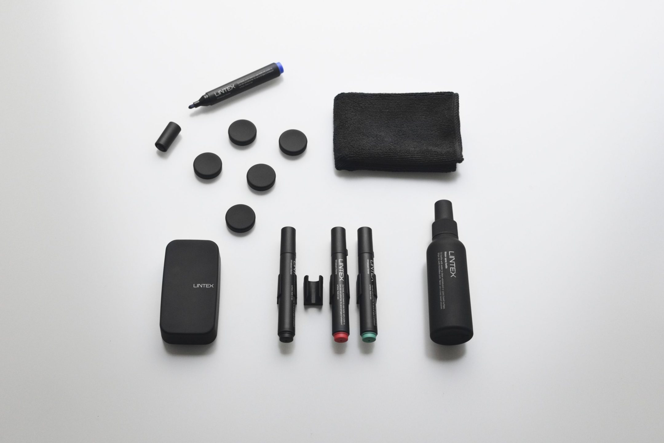 Whiteboard startsæt med alt det tilbehør du skal bruge, når du køber et whiteboard. Startsættet indeholder 4 markere med magnetisk holder, tavlevisker med 3 refills, 6 magneter og rensevæske.