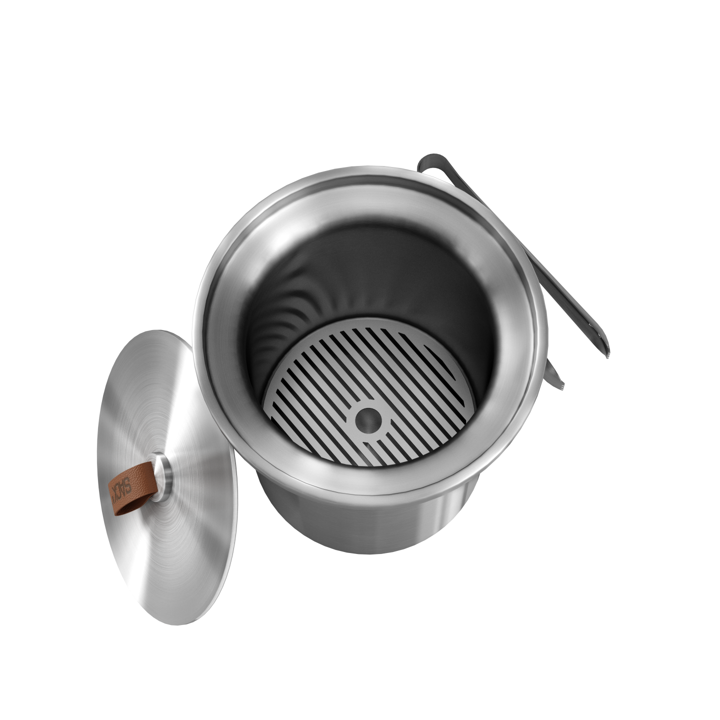 Med sit enkle design, satinpolerede rustfri stål og geometriske former skaber SACKit vinkøleren en elegant atmosfære, der passer både indendørs og udendørs. Den kan stå alene, kombineres med Patio Accessory Stand eller placeres i SACKit Patio Sofa bordet.