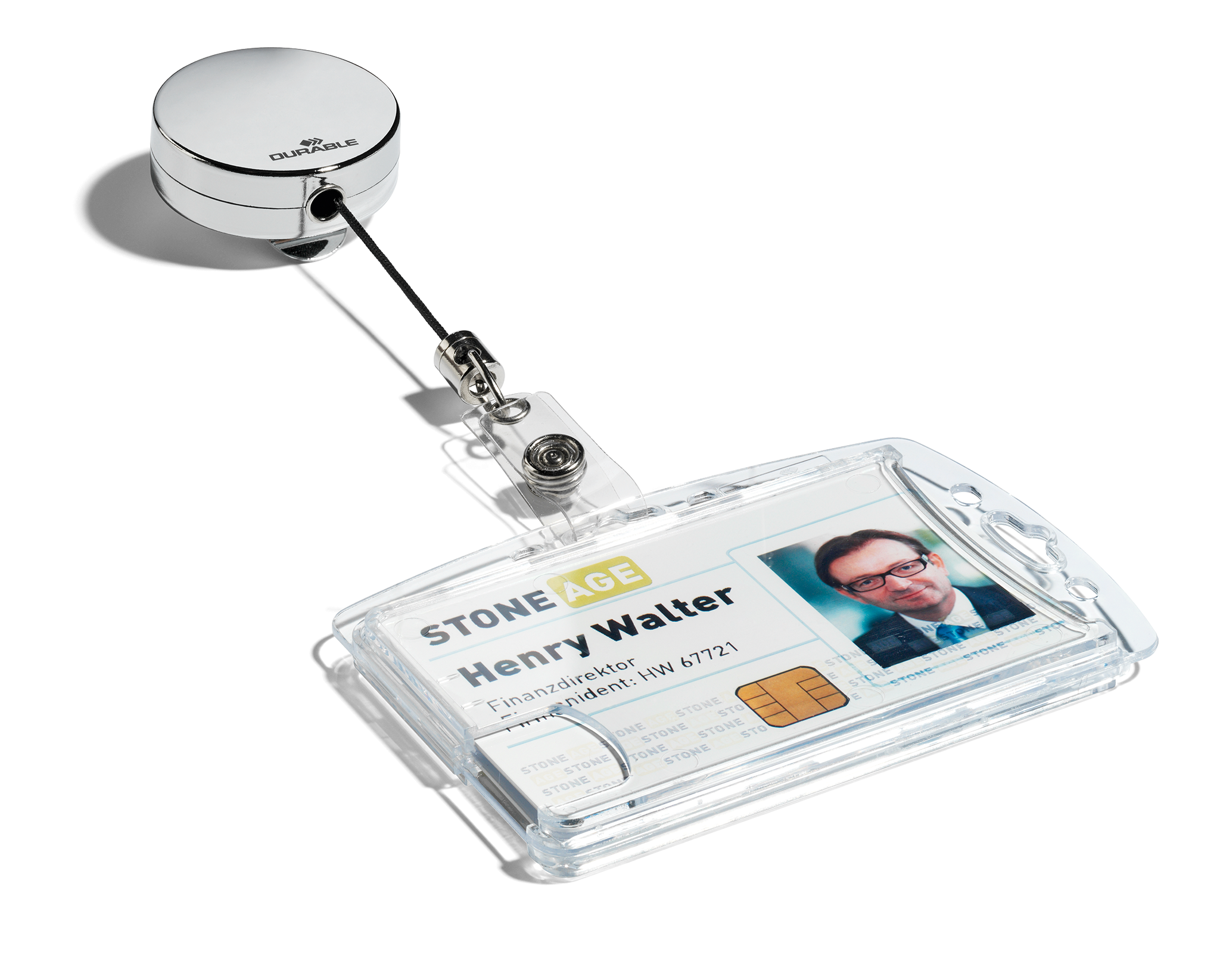 stilren yoyo-holder med plaststrop med trykknap, velegnet til navneskilte og kortholder med hul. Af forkromet metal. Med ekstra stærk metalclips på bagsiden af yoyo til fastgørelse i dit bælte eller linning. Kan trækkes ud til 80 cm længde. Ø 40mm.