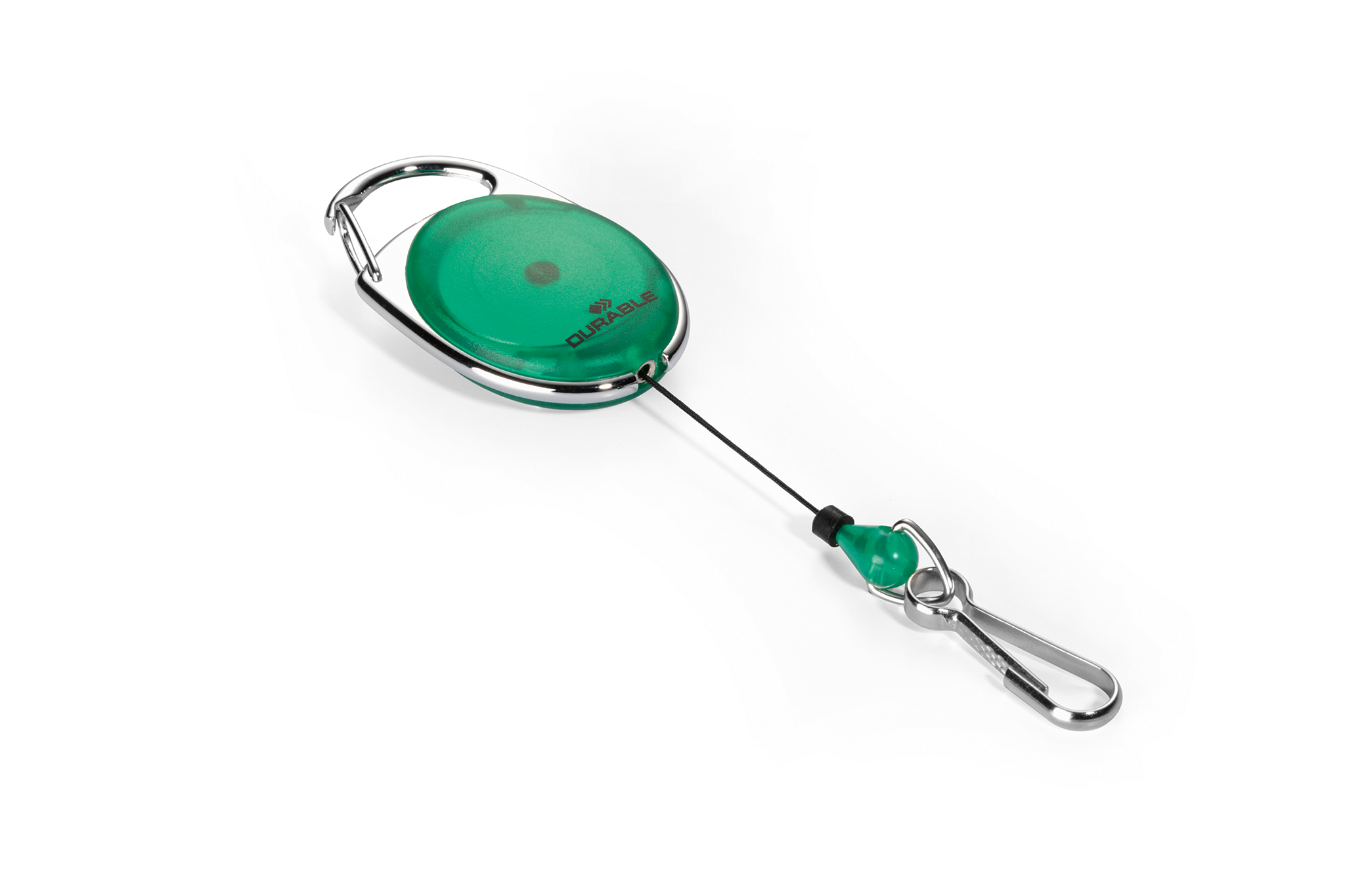 Yoyo-holder med metalkrog, velegnet til navneskilte og kortholder med hul. Topklemme til fastgørelse i buksestrop. Kan trækkes ud til 80 cm længde. En individuelt pakket i blisterpak pose.
