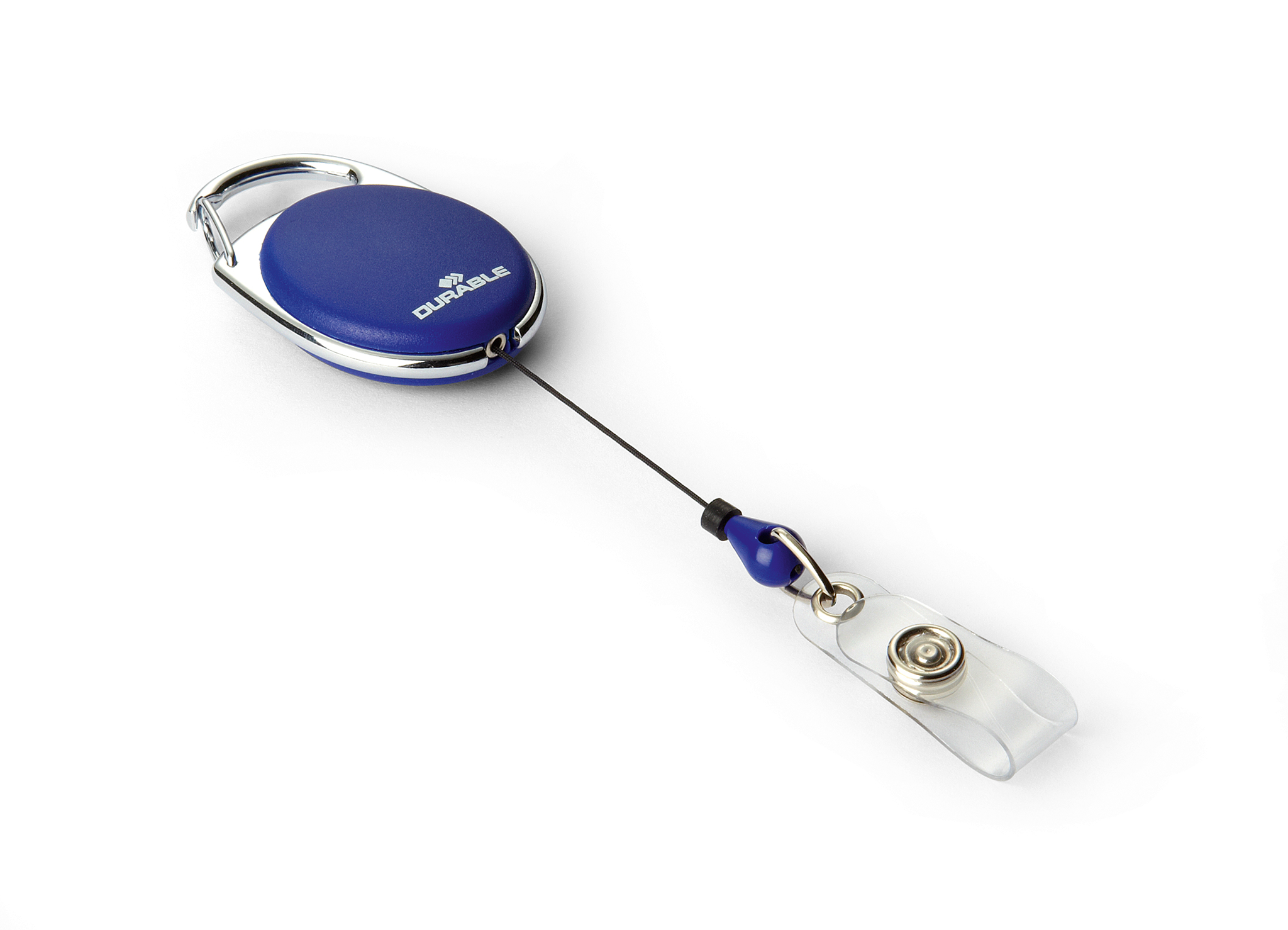 Yoyo-holder med plaststrop med trykknap, velegnet til navneskilte og kortholder med hul. Topklemme til fastgørelse i buksestrop. Kan trækkes ud til 80 cm længde