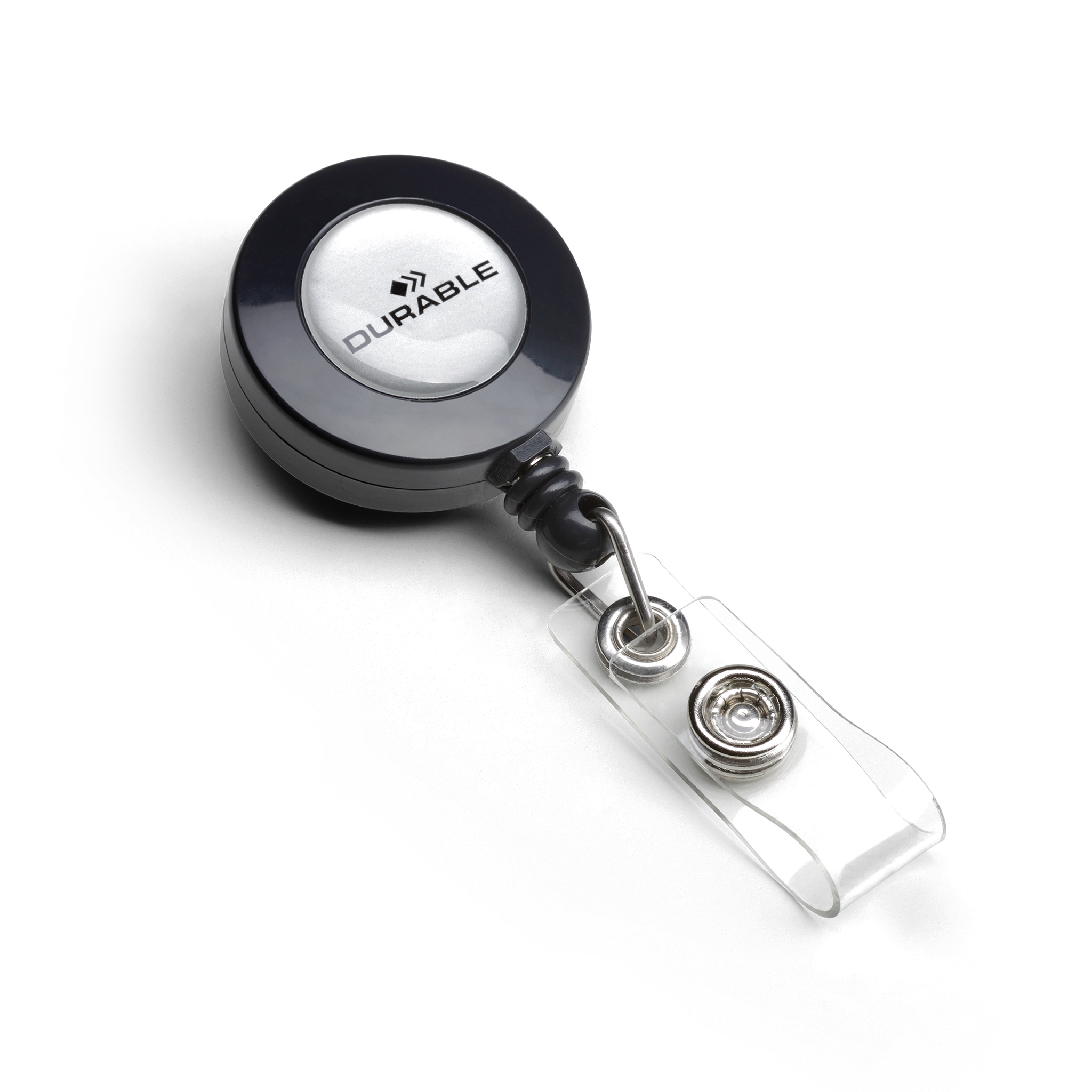 Yoyo-holder med plaststrop med trykknap, velegnet til navneskilte og kortholder med hul. Metalclips på bagsiden af yoyo til fastgørelse i dit bælte eller linning. Kan trækkes ud til 80 cm længde.